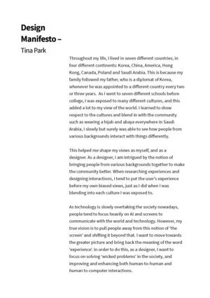 Manifestos 2022 2018 2019 2020 2021 Lu Zhu Tina Park Jeffery Chou Tina Park Jeffery Chou Tina Park Jeffery Chou Omar Alhait Omar Alhait Explore Course Content Course Materials Student Work SyllabusLecture SlidesReading Materials ManifestosStakeholder MapsResearch PapersFinal Projects